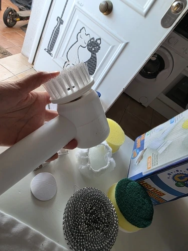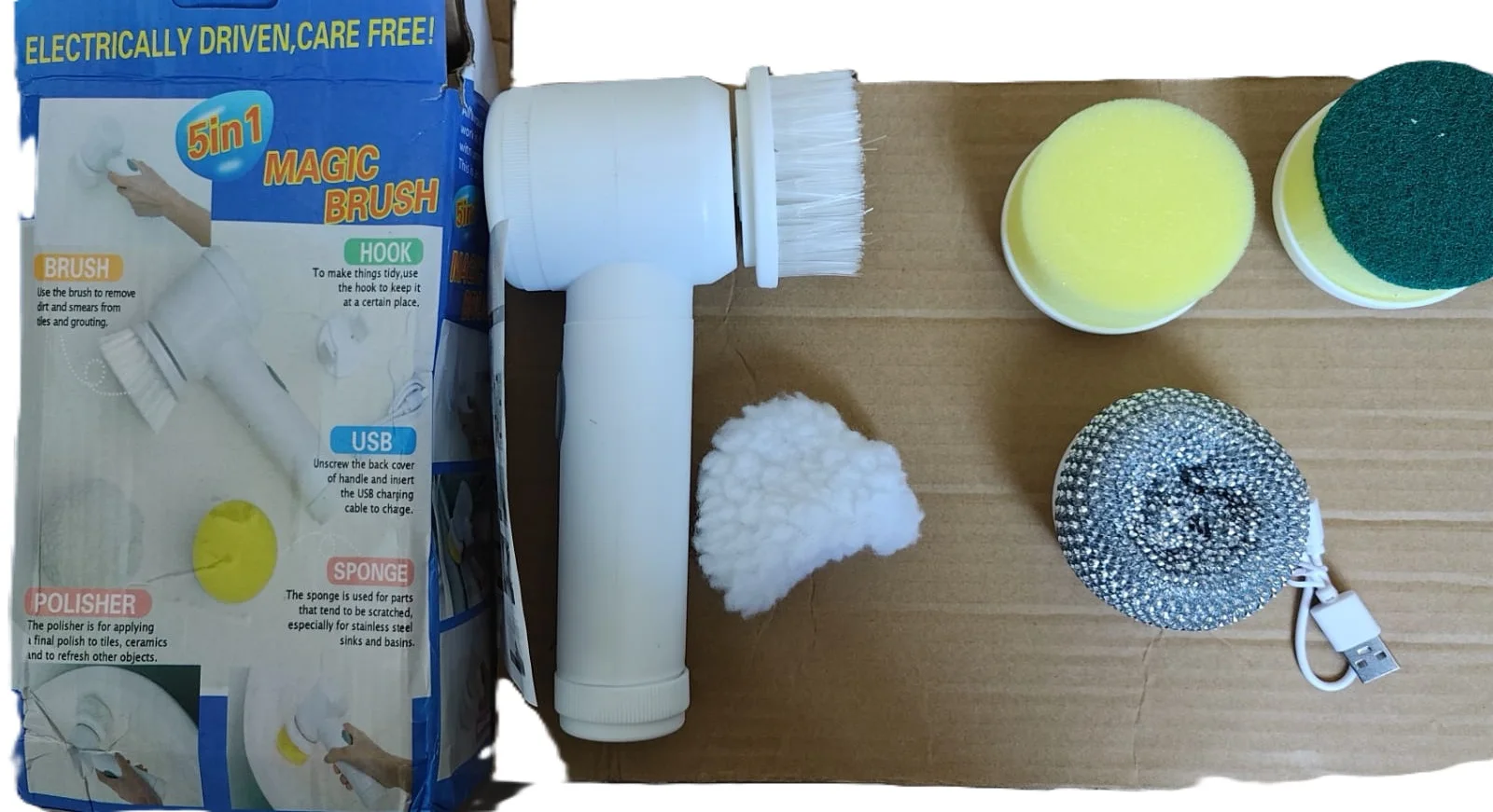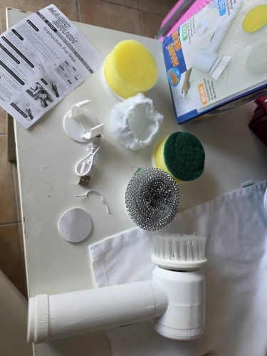 - What's in the box: Electric cleaning brush x1, PP brush head x1, Sponge brush head x1, Wool brush head x1, Steel ball brush head x1, Cleaning pad brush head x1